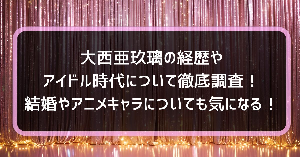 今回は、そんな大西亜玖璃さんの経歴やアイドル時代、結婚、アニメキャラについて詳しく調べてみました。