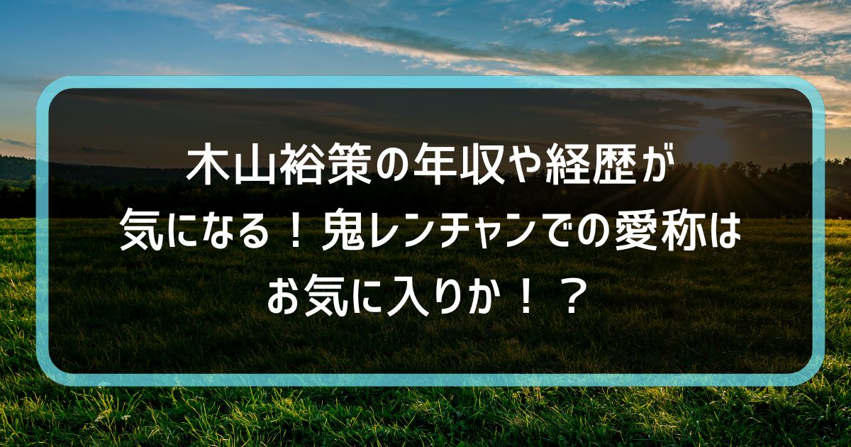 木山裕策さんの名前を聞いて、顔が思い浮かべられる方は、『鬼レンチャン』を楽しみにみている方でしょう。