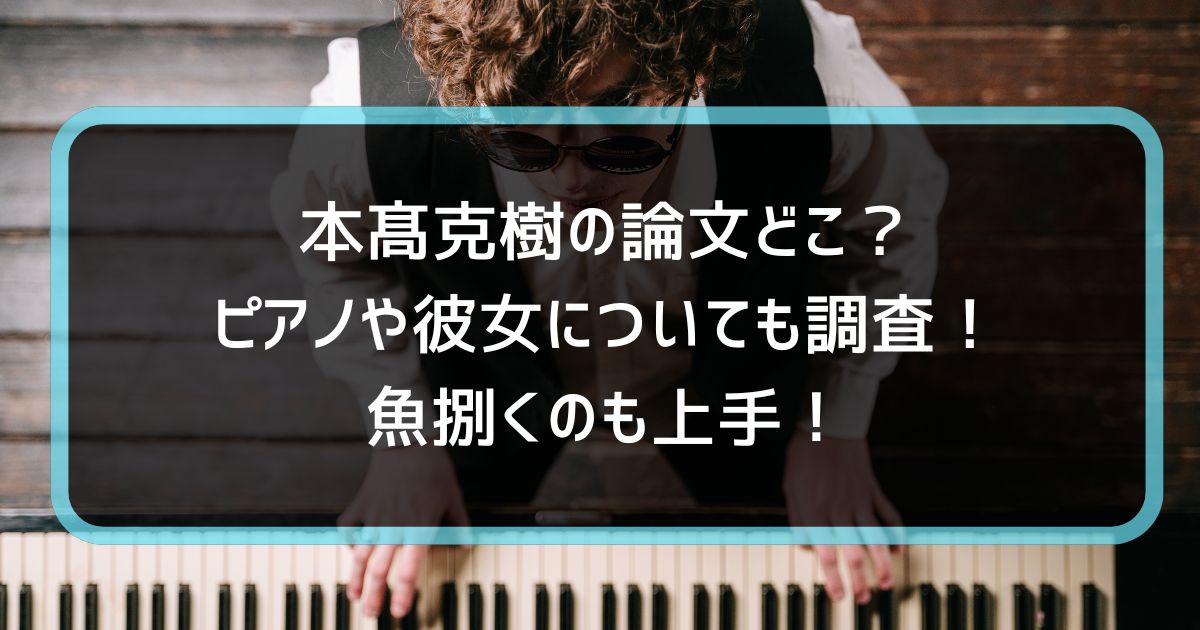 そこでこのページでは、本髙克樹さんの論文の公開状況、ピアノ、歴代彼女の報道、魚を捌く場面まで調査しました。