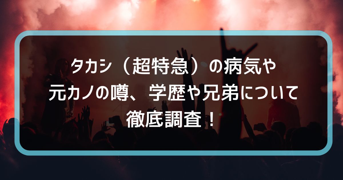 今回は、超特急のボーカル・タカシさんの病気や元カノの噂、学歴や兄弟について調べてみました。