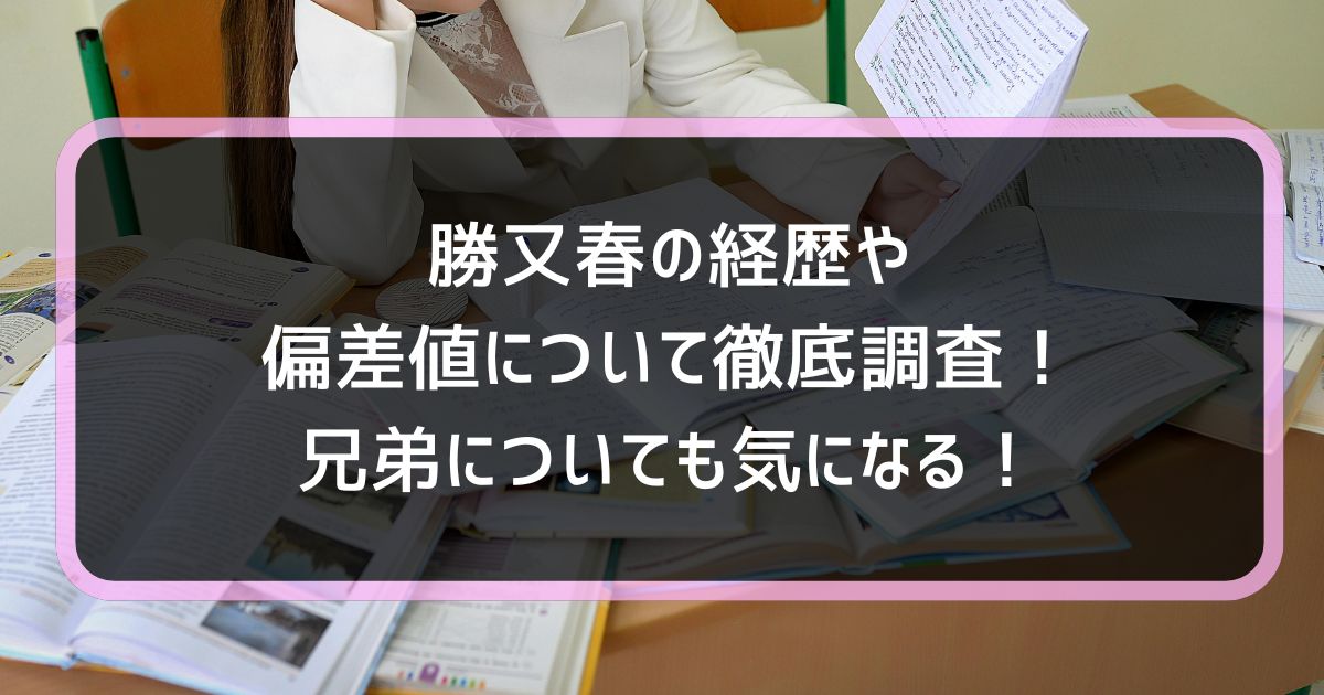 今回は、そんな勝又春さんの経歴や偏差値、兄弟について詳しく調べてみました。