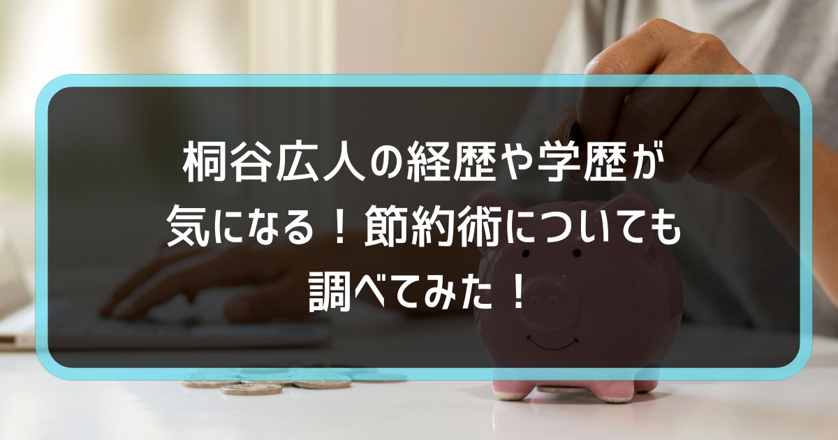 今回は、桐谷広人さんの経歴や学歴、そして独特の節約術について調べてみました。