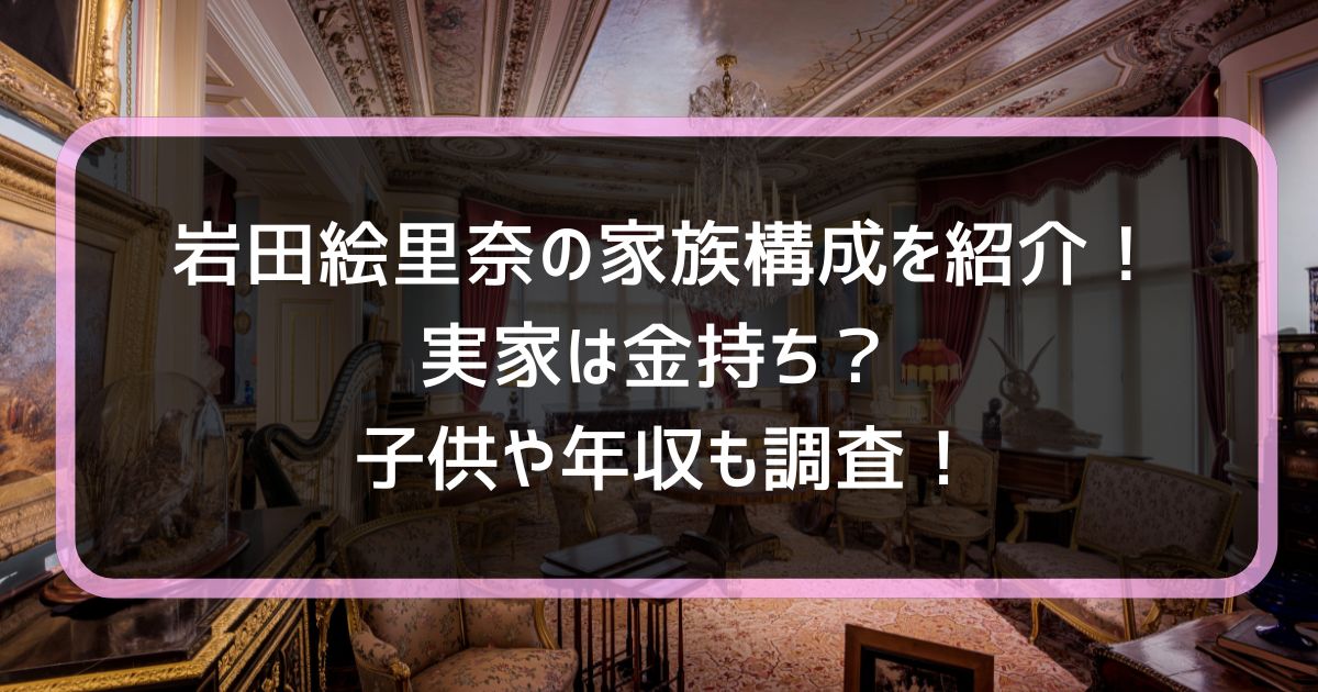そこで今回は、そんな岩田絵里奈さんの家族構成や実家の環境、姉妹のエピソード、そして年収や子供の有無といったプライベート事情まで、まとめてご紹介します。